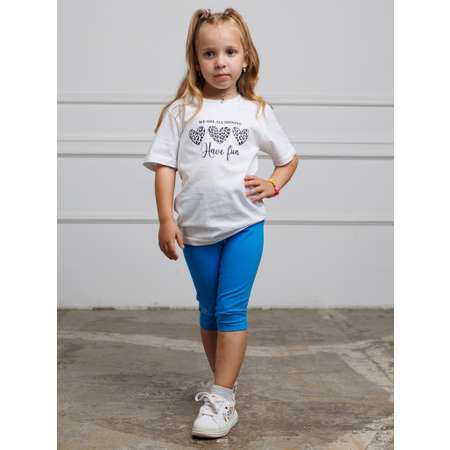 Летний костюм для девочки из 100% хлопка с оригинальным принтом. В комплект в ходит футболка с коротким рукавом и леггинсы. Ткань кулирная гладь- плотно из легкой трикотажной ткани. Сделано в России.
