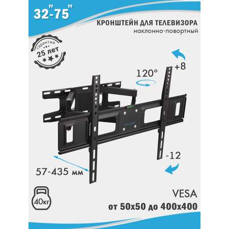 Кронштейн подходит для большинства телевизоров диагональю 32, 37, 38, 39, 40, 42, 43, 47, 48, 49, 50, 55, 58, 60, 65, 70 дюймов популярных брендов.
