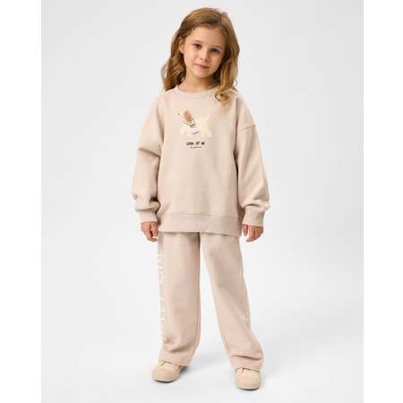 Широкие брюки для девочки Futurino в бежевом цвете с надписью "Sweet like you".