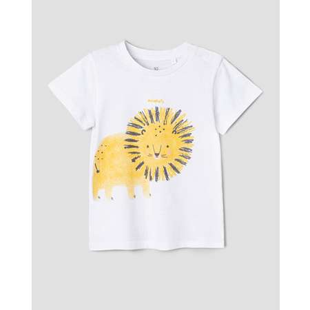 Белая футболка для мальчика BabyGо, декорированная принтом со львом.