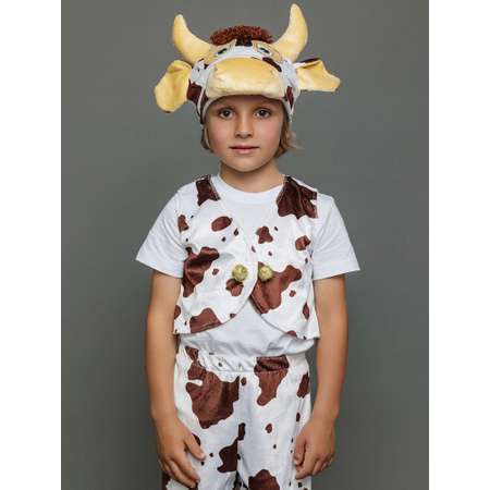 Карнавальный костюм Теленка Гаврюши для мальчика прекрасно подойдет для новогоднего утренника или спектакля в детском саду. Задорный и очаровательный Теленок Гаврюша понравится всем деткам на празднике. В комплект костюма входит жилет, гортики и маска-шапочка.