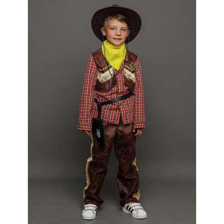 Этот воинственный образ создан специально для неугомонных мальчишек, которые мечтают быть самыми классными персонажами на празднике. Тематика Дикого Запада популярна уже много лет, и вашему мальчику наверняка понравится качественный и реалистичный образ в этом стиле. Образ полностью целостный, продуман от ковбойской рубашки и брюк и заканчивая шляпой и пистолетом.