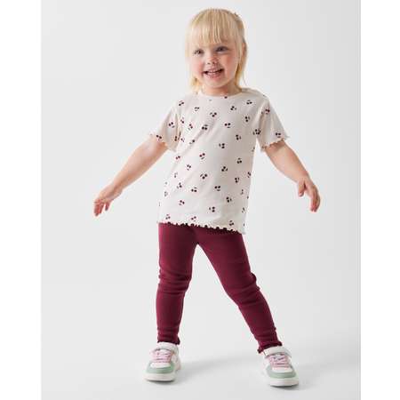Комплект для девочки BabyGо из футболки и легинсов, декорированный цветным принтом с вишенками.