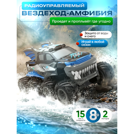 Радиоуправляемый вездеход-амфибия — настоящая вседорожная машина! Он легко справляется с любыми поверхностями: травой, песком, снегом, грязью и даже сложным бездорожьем. Полная герметичность корпуса машины на радиоуправлении большой позволяет ему плавать на воде. Восемь колёс обеспечивают отличное сцепление с поверхностью, гарантируя проходимость даже в самых экстремальных условиях. Весьма мощный аккумулятор обеспечивает до 35 минут непрерывной игры как в помещении, так и на улице. Вездеход развивает скорость до 15 км/ч, что делает игру захватывающей как для детей, так и для взрослых. Его конструкция продумана до мелочей, позволяя наслаждаться захватывающими приключениями в любых условиях.
