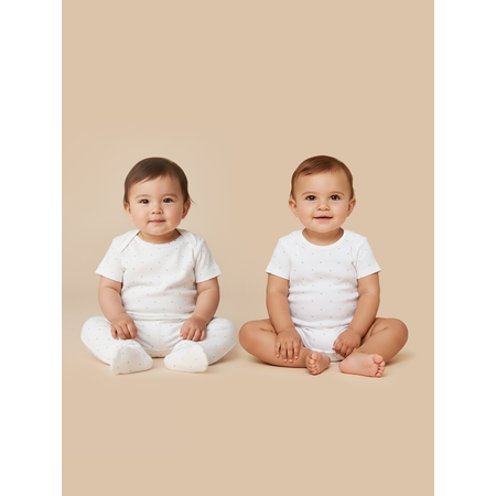 Мягкий и дышащий комплект для девочки, созданный для максимального комфорта. Футболка с коротким рукавом и удобные ползунки обеспечивают свободу движений. Натуральный хлопок гипоаллергенен, не раздражает кожу и отлично пропускает воздух. Универсальный белый цвет легко сочетается с другими вещами. Практичный и нежный набор для ежедневной носки, прогулок и особых моментов. Легок в уходе – можно стирать в машинке.