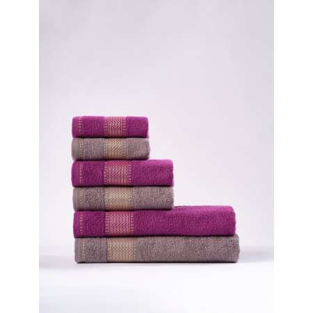 Полотенце банное набор Ночь Нежна "Goldy" 70х130см, 50х80см и 30х60см 6шт цвет серый/фиолетовый
