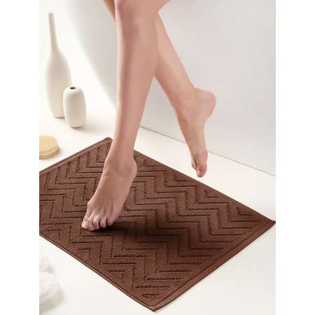 Полотенце коврик для ног махровый 50x70 см коричневый шоколад зигзаг