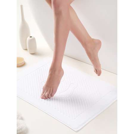 Полотенце коврик для ног махровый 50x70 см белый полоса