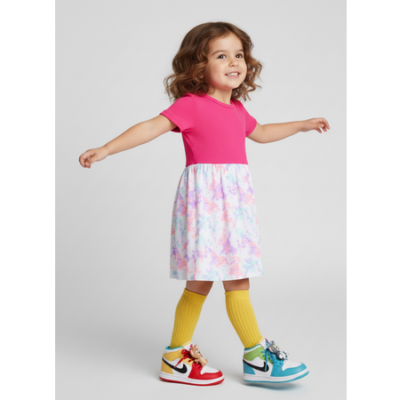 Платье для девочки с короткими рукавами. Изготовлено из ткани кулирка, кашкорсе 100% хлопок. Платье отрезного по талии. Платье подходит для детского садика, для прогулок и для дома.