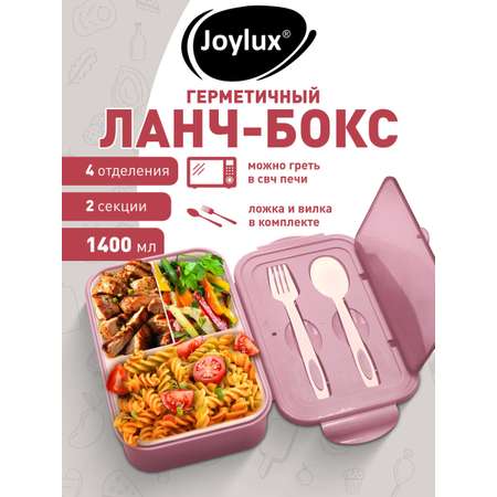 Ланч-бокс Joylux контейнер для еды с 4 отделениями и приборами 1,4 л 2 уровня 7х21х14 см
