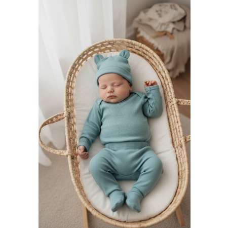 Комплект одежды из кашкорсе: боди, штанишки и шапочка.