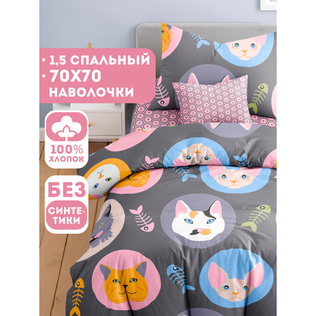 Комплект постельного белья Ночь Нежна Кис-Кис полутораспальный 3 предм.