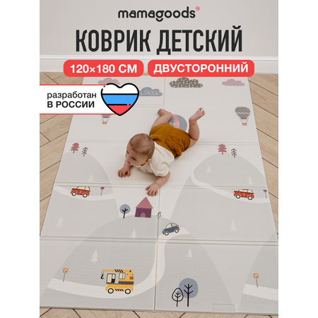Цена на Развивающий коврик детский Mamagoods для ползания складной игровой 120х180 см Пейзаж и Азбука - 1850 ₽.