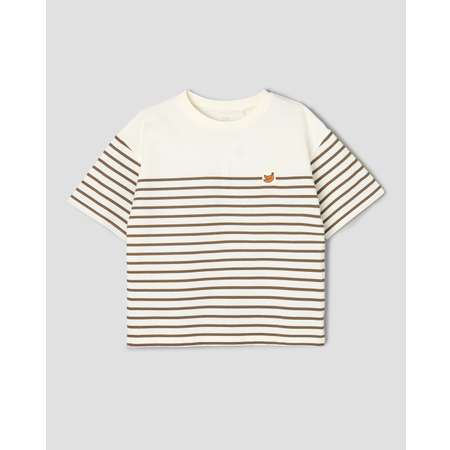 Футболка для мальчика Futurino Fashion молочного цвета в полоску, декорирована нашивкой.