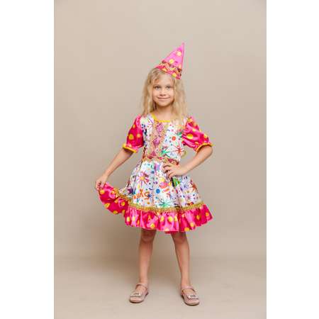 Неповторимый наряд Хлопушка создан для самых активных и зажигательных девчонок. Устроить праздник друзьям и близким легко вместе с карнавальным костюмом Хлопушка от бренда Пуговка. Образ представляет собой яркое платье и колпак на голову.