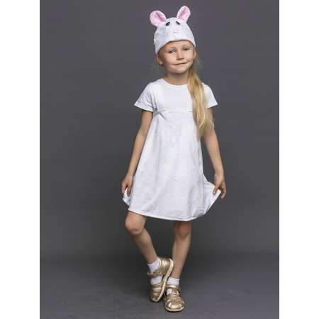 Костюм Мышонок Мисси детский белый из плюша прекрасно подойдет для новогодних утренников и спектаклей. Удобный и легкий костюм представлен в виде сарафана и маски-шапочки. Один универсальный размер на 4-6 лет.