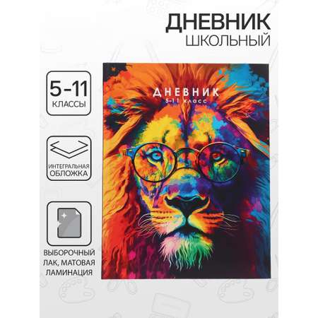 Дневник Calligrata обл 5-11кл, мат/лам, ВЫБ ЛАК, 48л, Calligrata TOP, "Лев. Мозаичный неон"