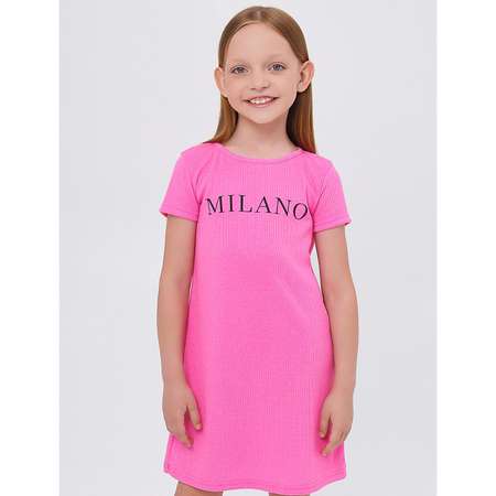 Платье для девочки с принтом. Платье А-силуэта из мягкой ткани кашкорсе удобно в носке и подходит для активного образа жизни. Короткие рукава и эластичный материал обеспечивают комфорт и свободу движений каждый день.
