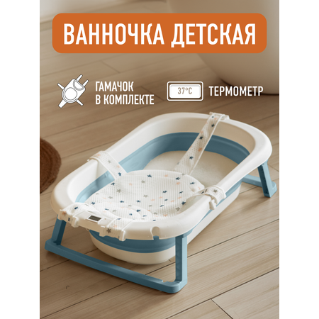 Складная ванночка Mamagoods для купания новорожденных с термометром морская волна