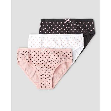 В комплекте Futurino три модели трусов для девочки, декорированные принтом с сердечками - розовые, белые и тёмно-серые.