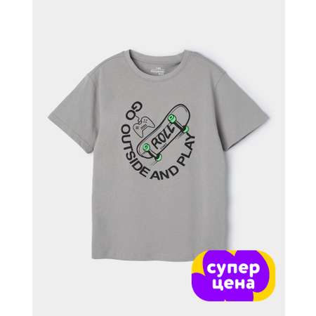 Серая футболка для мальчика Futurino с принтом "Go outside and play".