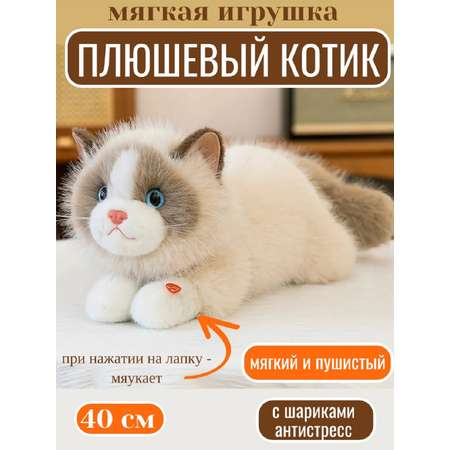 Мягкая игрушка ТОТОША котик плюшевый со звуком 40 см