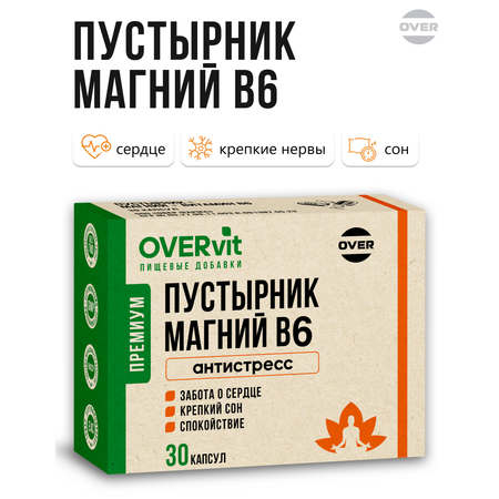 Пустырник Магний В6 OVER БАД против стресса успокаивающее для снятия напряжения 30 капсул