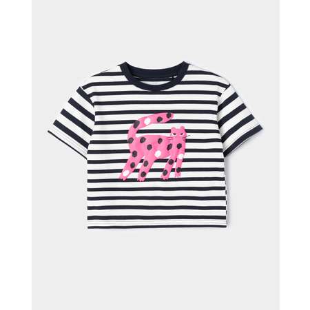 Полосатая футболка для девочки Futurino Fashion с контрастным принтом в виде леопарда.
