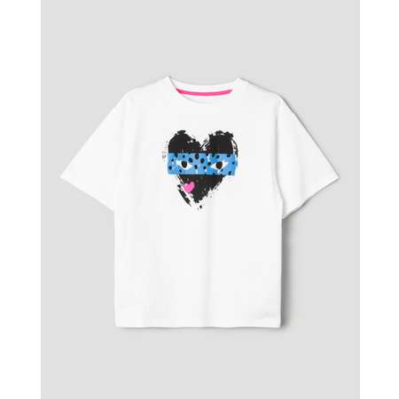 Белая футболка для девочки Futurino Fashion с цветным принтом "сердце".