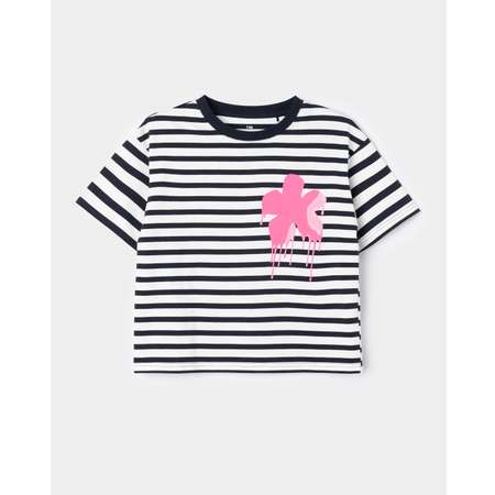 Полосатая футболка для девочки Futurino Fashion с контрастным принтом в виде цветка.