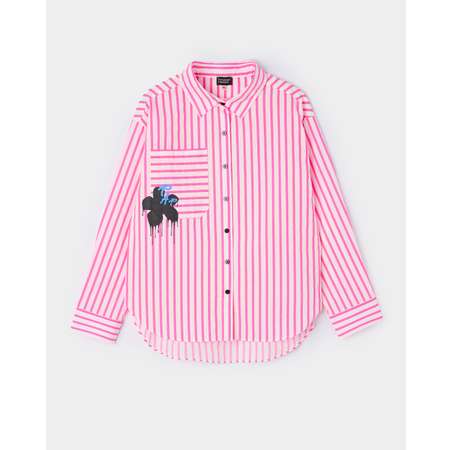 Рубашка для девочки Futurino Fashion в ярко-розовую полоску, с контрастным принтом на кармане.