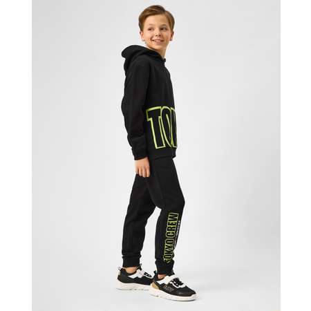 Чёрные брюки для мальчика Futurino с контрастными надписями.