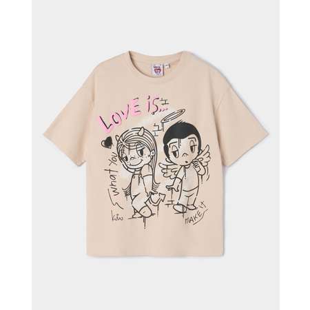 Бежевая футболка для девочки Love is.. с цветным принтом.