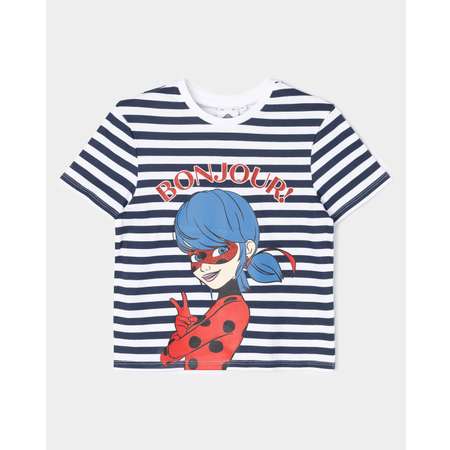 Полосатая футболка для девочки Miraculous, декорированная принтом "Леди Баг" с блёстками.