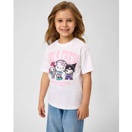 Белая футболка для девочки HELLO KITTY AND FRIENDS с красочным принтом.