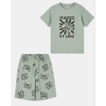 Пижамный комплект для мальчика Futurino из футболки шорт в цвете хаки с однотонным принтом.