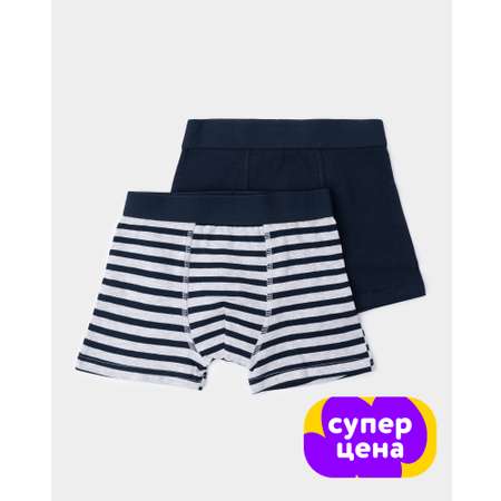 В комплекте Futurino две модели трусов-боксеров для мальчика - полосатые и однотонные тёмно-синие.