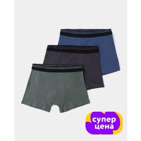 В комплекте Futurino три базовые модели трусов-боксеров для мальчика - синие, тёмно-серые и в цвете хаки.
