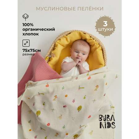 Пеленка муслиновая BUBA KIDS KIDS Сады Кавказа/ горчица/ малина со сливками, 75х75 см 3 шт.