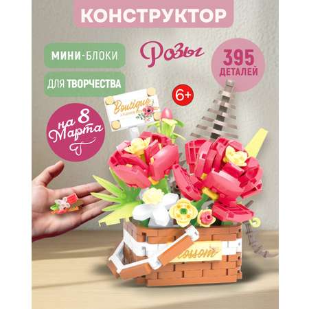 3D конструктор из миниблоков Blockformers Корзина с розами от 1TOY – это конструктор цветы, который сможет подарить захватывающую возможность создать свой собственный цветочный сад! Конструктор фигурки 3д содержит 395 элементов. Совместим с другими известными брендами.
