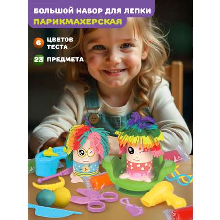 С этим игровым набором для лепки можно открыть самую модную парикмахерскую прямо у себя дома! Юный стилист сможет создать для посетителей студии веселые прически необычных трендовых цветов, а потом дополнить их образы яркими украшениями. В комплекте есть все самое необходимое для развития творческих способностей ребенка: фигурки человечков, парикмахерское кресло, разноцветное тесто для лепки, формочки и стеки, а также стильные пластиковые аксессуары. Моделируйте и фантазируйте, смешивайте разные цвета теста и создавайте новые креативные оттенки!