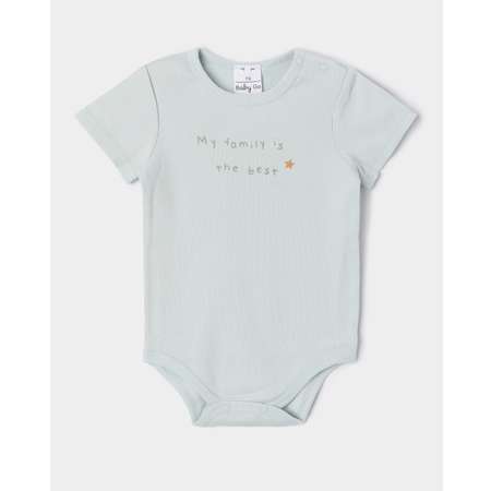 Светло-синее боди для мальчика BabyGо, декорированное контрастным принтом с надписью "My family is the best".