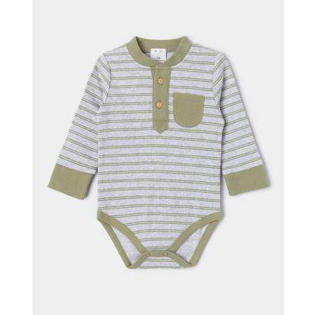 Боди для мальчика BabyGo в полоску. Декорирован контрастным нагрудным карманом.