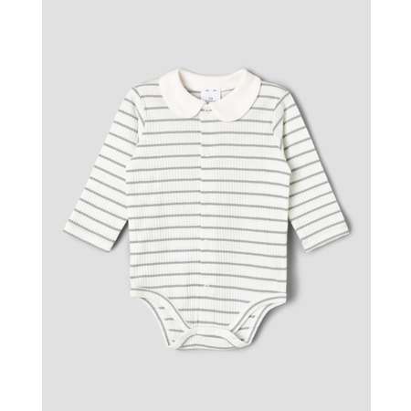 Боди для мальчика BabyGo белого цвета в полоску, с отложным воротничком.