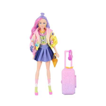 Это удивительная игрушка- барби кукла для детей от трех лет, которая превратит игровой процесс в настоящее путешествие в мир фантазий и приключений. Куколка с яркими волосами, стильно одетая в разноцветный яркий наряд, создает образ настоящей принцессы. В ярком платье с сумочкой и украшениях, таких как колье, серьги, эта леди сразу привлекает внимание. В наборе идет чемодан, который добавляет игре реализма и позволяет девочки воображать и проигрывать путешествие вместе с куколкой.