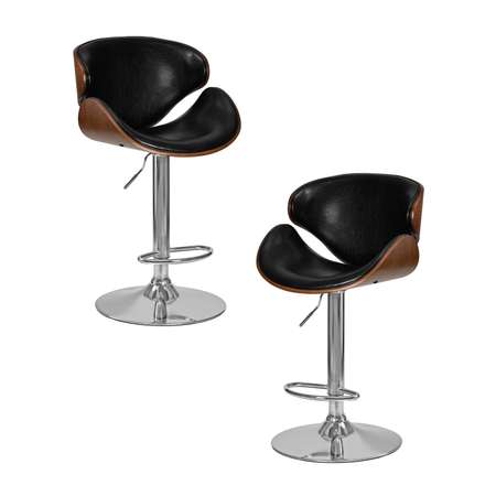 Набор 2 шт Стул барный DOBRIN KARTER, цвет сиденья черный, цвет каркаса сиденья коричневое дерево, цвет основания хром
