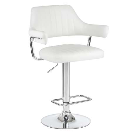Стул барный DOBRIN CHARLY (белый). Сиденье искусственная кожа, сиденье фигурной формы, мягкое, с мягкой спинкой. Основание сделано из прочного металла. Есть механизм вращения. Стул с подлокотниками высотой 18 см. Стул с газлифтом, с регулировкой высоты максимальной высотой 120 см и минимальной высотой 99 см, ширина 61 см, глубина 54 см. Сиденье с максимальной высотой 82 см и минимальной высотой 61 см. Требуется простейшая сборка, удобная инструкция прилагается. Товар изготовлен по уникальному дизайну и эскизу DOBRIN с любовью к мебели. Максимальная нагрузка 100 кг. Гарантийный срок 12 месяцев и минимальный срок службы от 5 лет. Отлично подойдет барный стул для кухни, бара, кафе, ресторана, на дачу, парикмахерскую, в салон красоты или барбершопЦены в интернет-магазине могут отличаться от розничных магазинов.
