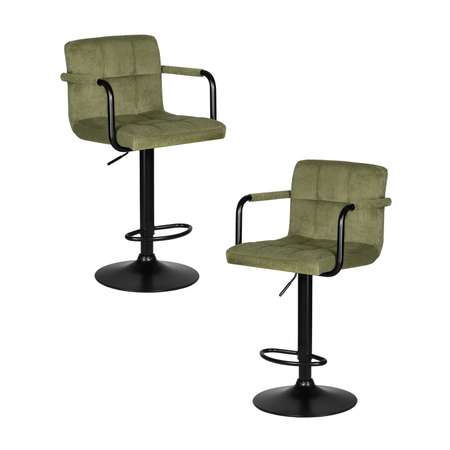 Набор 2 шт Стул барный DOBRIN KRUGER ARM BLACK, цвет сиденья зеленый вельвет (LAR-E2041-7), цвет основания черный