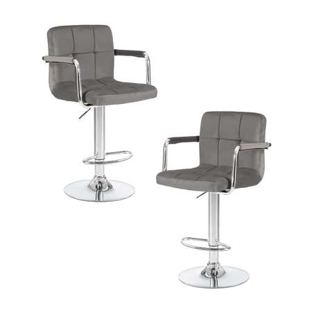 Набор 2 шт Стул барный DOBRIN KRUGER ARM, цвет сиденья серый велюр (MJ9-75), цвет основания хромированная сталь