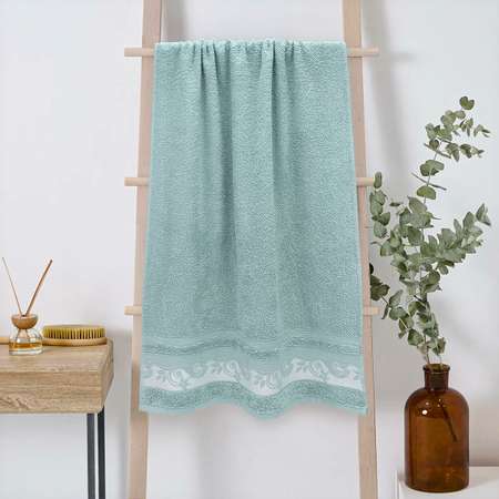 Махровое полотенце УЗБ Клэр м7795_34 L 70*130 мятн